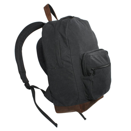 Vintage Black Canvas Expedition Backpack with Leather Accents