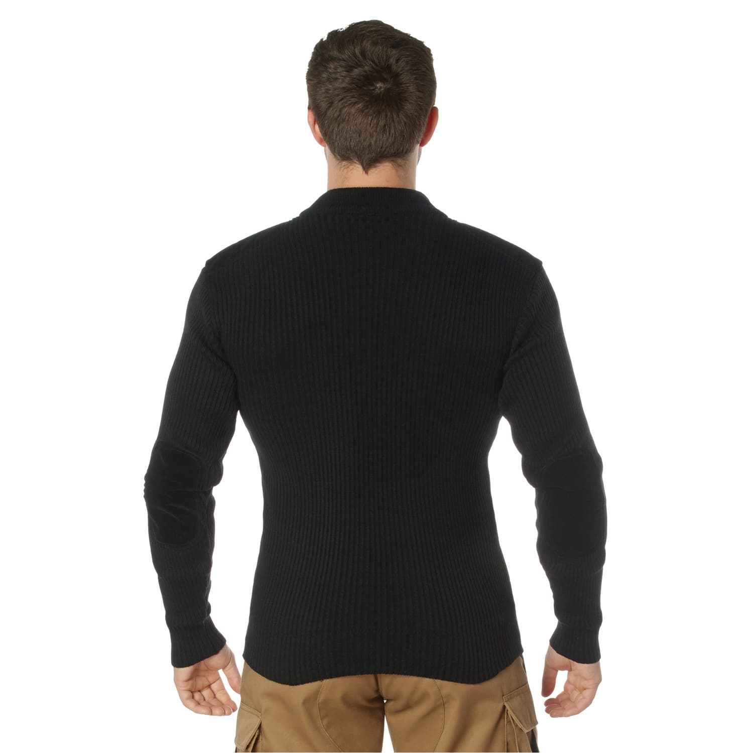 The black quarter zip commando sweater combines clean lines and practical functionality for everyday wear or outdoor use. Crafted from 100% acrylic, it provides consistent warmth while remaining lightweight. The front brass zipper gives you control over ventilation and layering, and the ribbed collar, cuffs, and waist make sure the sweater stays fitted and retains heat. Reinforced patches on the shoulders and elbows boost durability and help the sweater stand up to repeated wear.