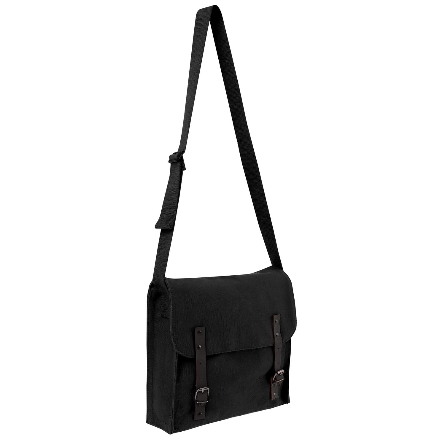 This medic style canvas shoulder bag is built to carry your everyday essentials with ease and durability. It features a large main compartment that comfortably holds notebooks, tablets, or tech gear, while the rugged 22 oz untreated canvas material stands up to heavy use and resists moisture by nature. The flap closure secured with leather straps keeps your items locked in and organized. With its fully adjustable shoulder strap, you can wear it cross-body or over one shoulder, making it a practical choice for commuting, travel, work, or carry-all uses.