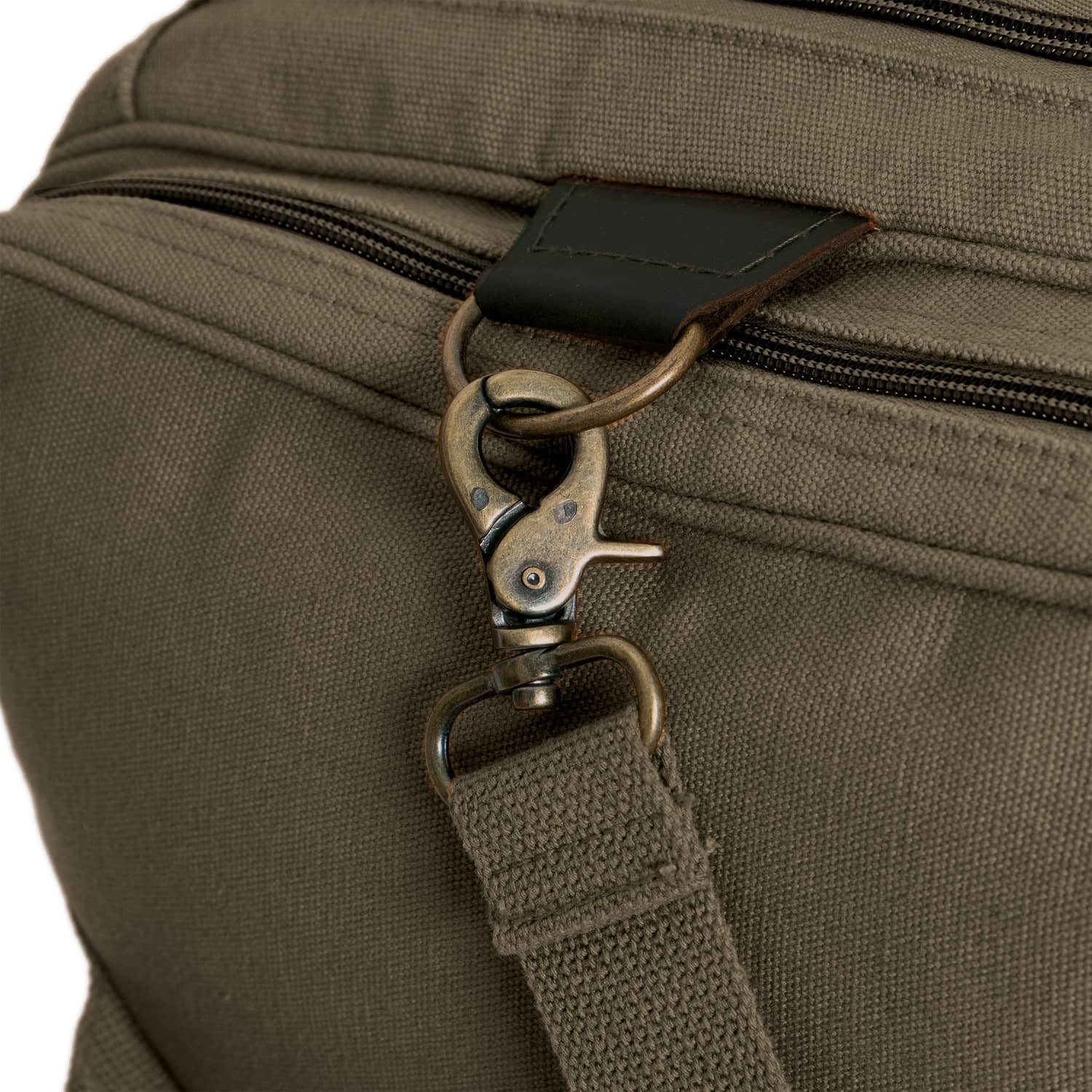 - Heavyweight canvas with leather accents antique brass hardware