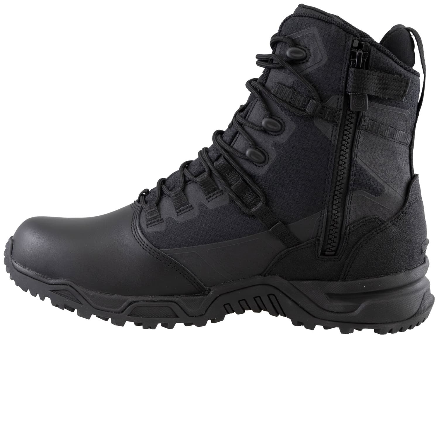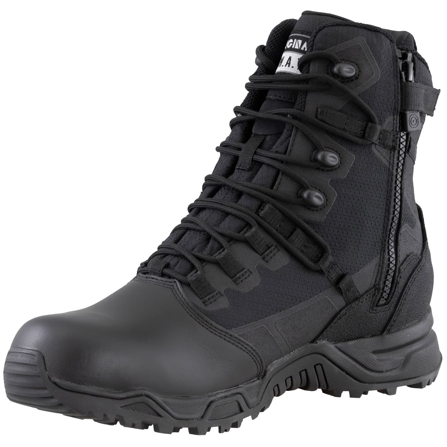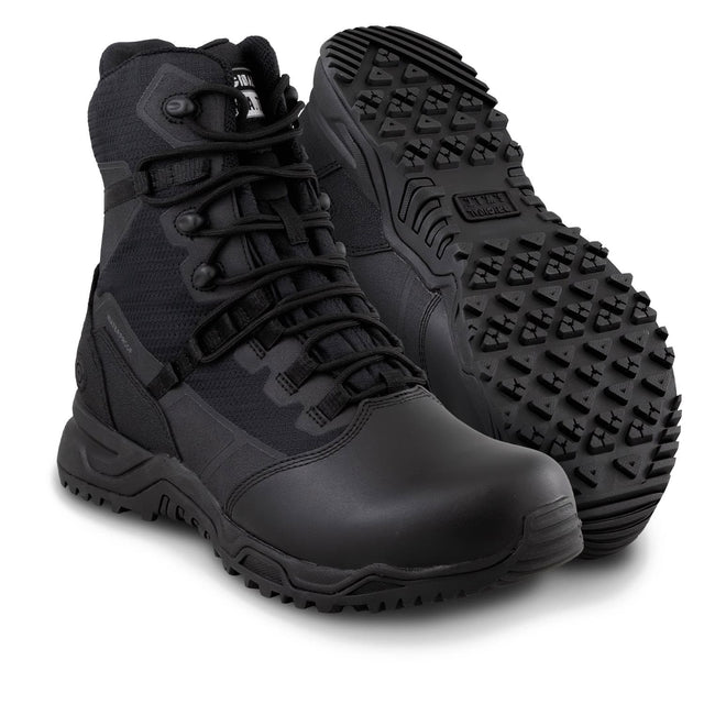 The Original S.W.A.T. Alpha Fury 186601 tactical boot is designed to meet the demanding needs of those who require agility and performance. This men's black waterproof boot merges the comfort of an athletic shoe with the dependable functionality of a tactical boot. The 8-inch height and polishable leather toe provide a professional appearance, making it suitable for uniform boots while ensuring durability in various conditions.